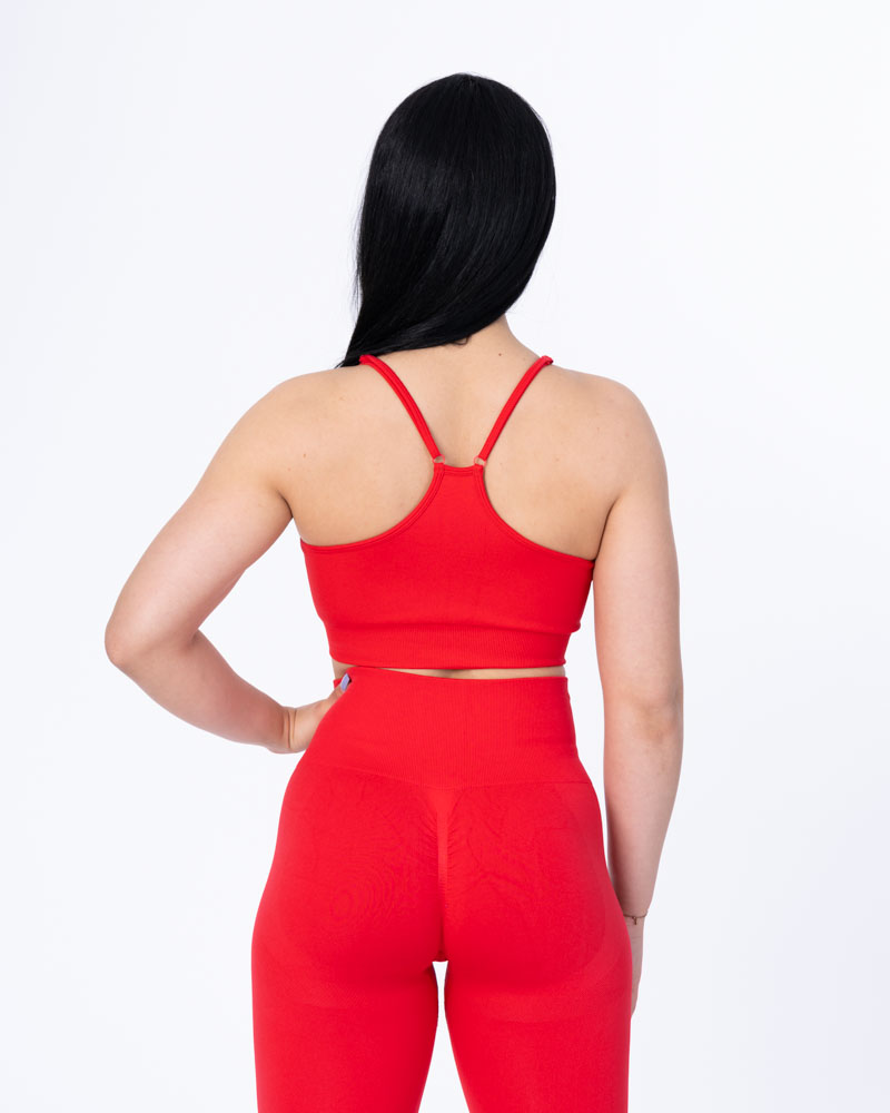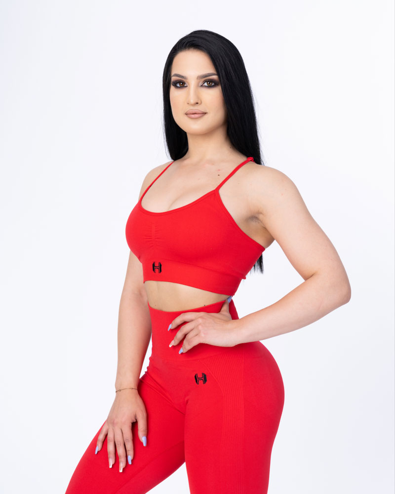 Atunci când știi că arăți bine, te simți bine, iar când te simți bine, performezi mai bine. Materialul este construit dintr-o țesătură mai densă, fără cusături, care menține respirabilitatea. Acesta oferă o compresie de neegalat, o elasticitate crescută și o flexibilitate înaltă, făcute pentru a ține pasul cu orice mișcare. Bustiera prezintă bretele reglabile, bureți detașabili și asemenea colanților, o cusătură strânsă frontală pentru redarea volumului. Vei fi mai mult decât pregătită pentru orice antrenament!