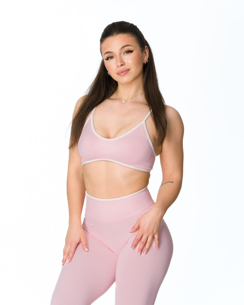 Descoperă Bustieră Fitness Nemea Light Rose, concepută pentru femeile care își doresc libertate de mișcare și un look modern în timpul antrenamentelor. Croiala cu decolteu în V pune subtil în valoare bustul, în timp ce cupele detașabile îți permit să alegi nivelul de susținere potrivit pentru activitatea ta. Marginea contrastantă albă evidențiază elegant zona bustului.