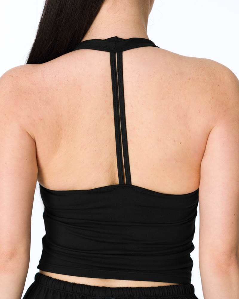 Vezi detaliiMaiou Fitness Ananke Black este creat pentru antrenamente în care feminitatea se întâlnește cu libertatea deplină de mișcare. Decolteul în V și bretelele subțiri fixe creează o linie delicată și modernă, în timp ce spatele rămâne frumos conturat.