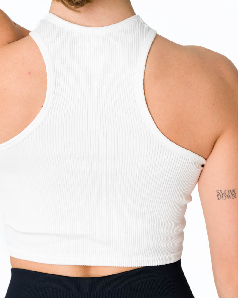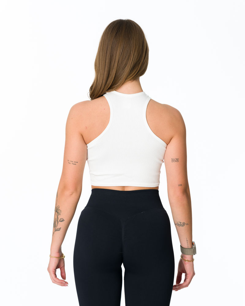 Maiou Fitness Ilmatar White este creat pentru femeile care doresc o piesă sport versatilă, modernă și confortabilă. Croiala scurtă, situată deasupra buricului, conturează talia și oferă un look fresh, perfect atât pentru antrenamente, cât și pentru outfituri athleisure.