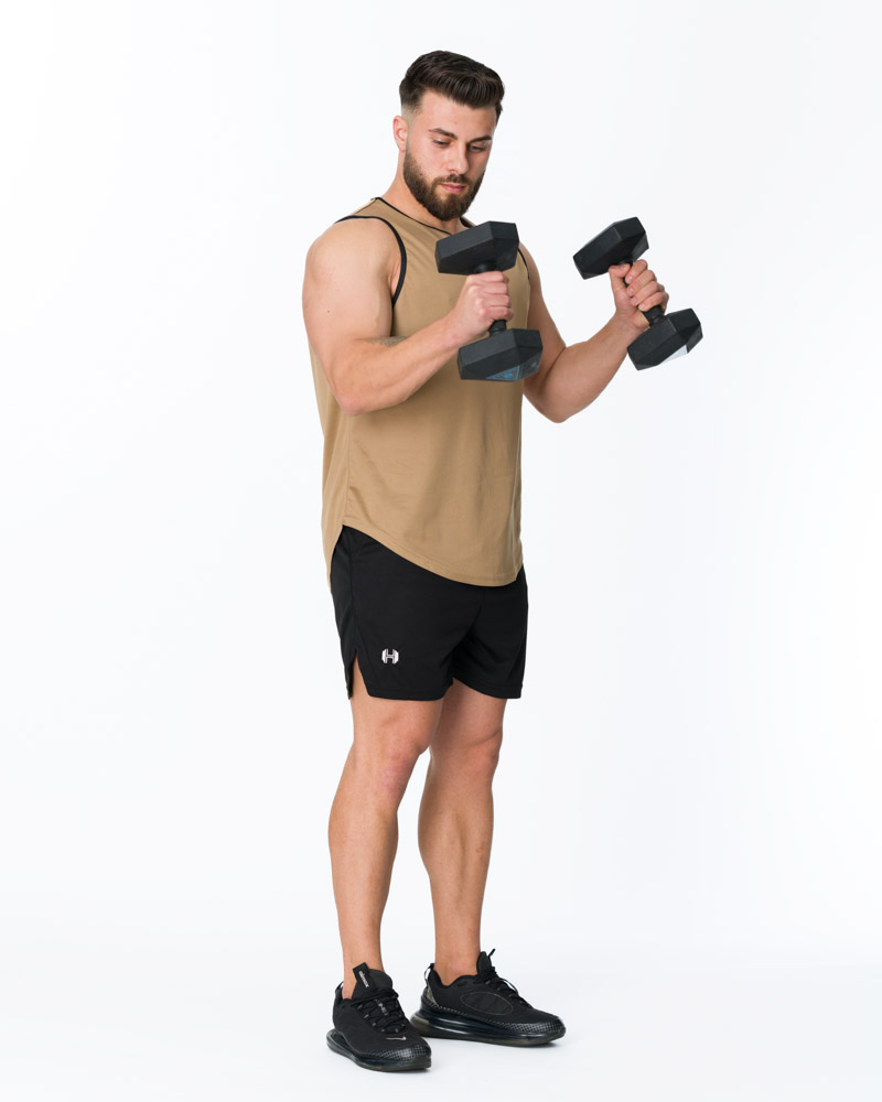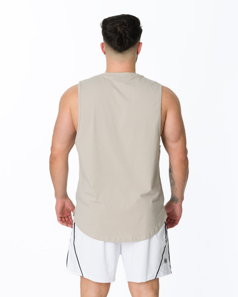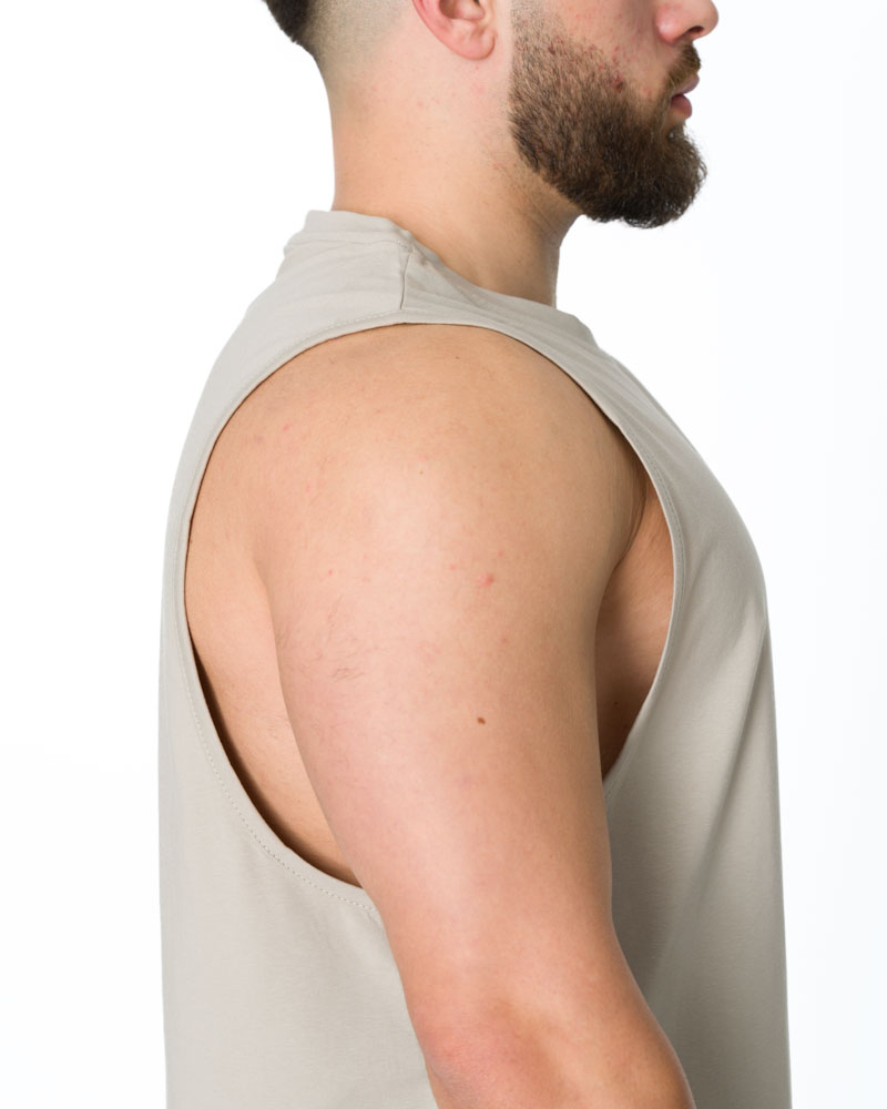 Designul cu tăietură în stil cut off evidențiază umerii și mușchii bine lucrați, în timp ce decupajele largi la brațe asigură ventilație excelentă și o gamă completă de mișcări. Terminațiile cu margine rotunjită creează o linie fluidă și un aspect bine finisat.