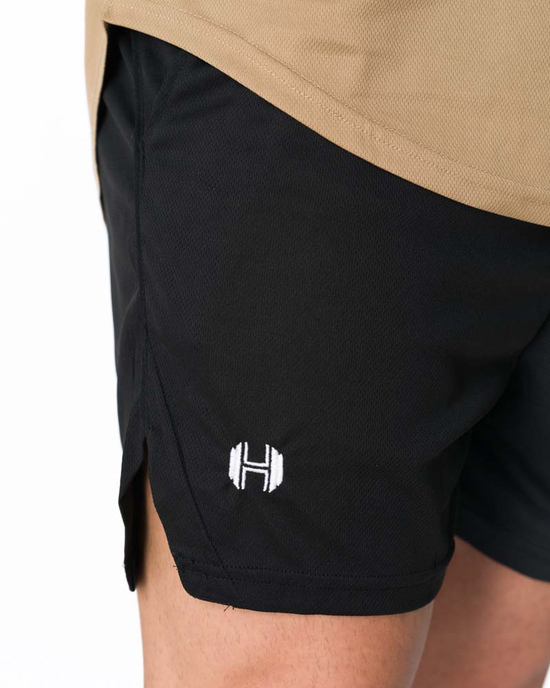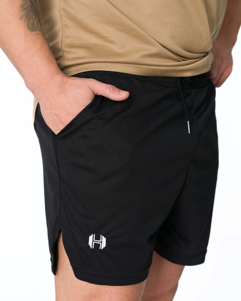 Croiala ușoară și compactă maximizează libertatea de mișcare, iar buzunarele laterale deschise sunt practice pentru obiectele esențiale. Logo-ul GymHyper brodat adaugă o notă premium și finalizează designul modern al acestor Pantaloni fitness scurți Quirinus Black.