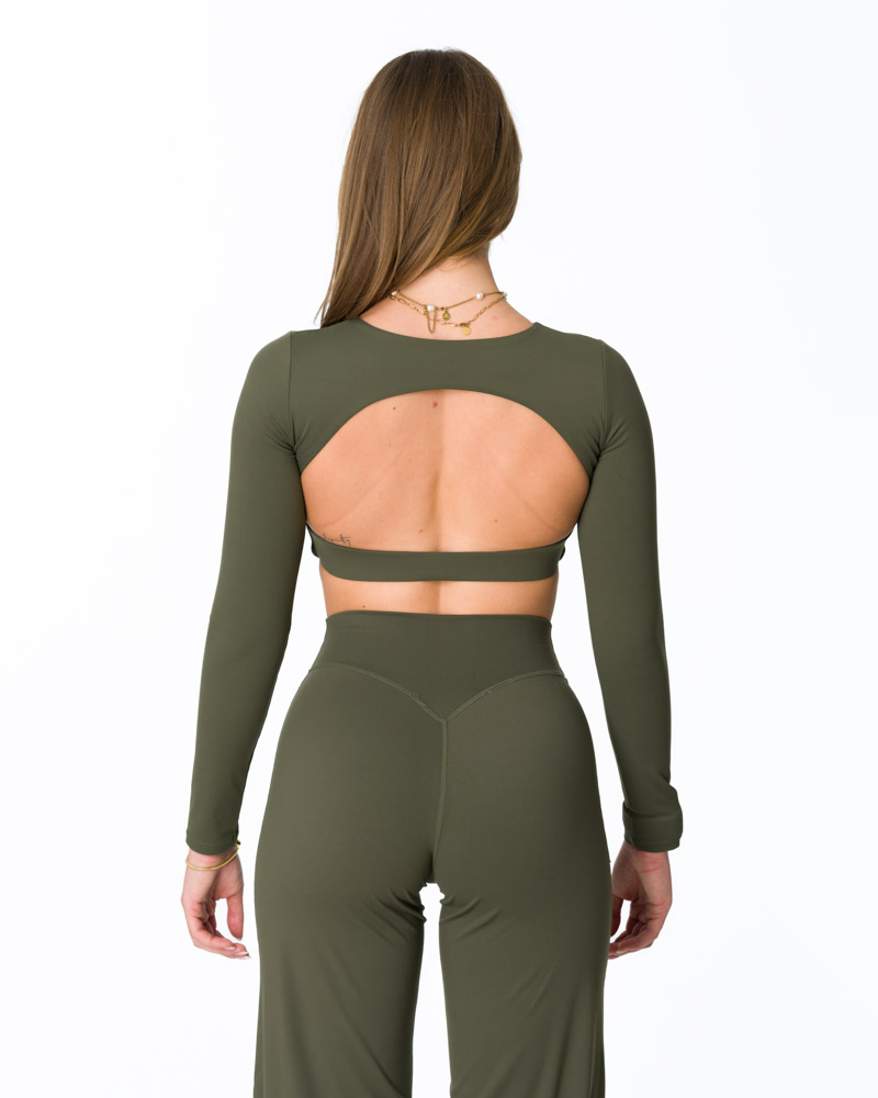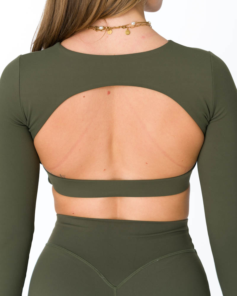 Mânecele lungi oferă acoperire suplimentară, iar bureții detașabili permit ajustarea nivelului de susținere în funcție de preferințe. Decupajul amplu de pe spate îmbunătățește aerisirea și conferă un aspect vizual de impact, transformând acest Top fitness Ixchel Olive într-o piesă atât practică, cât și estetica.